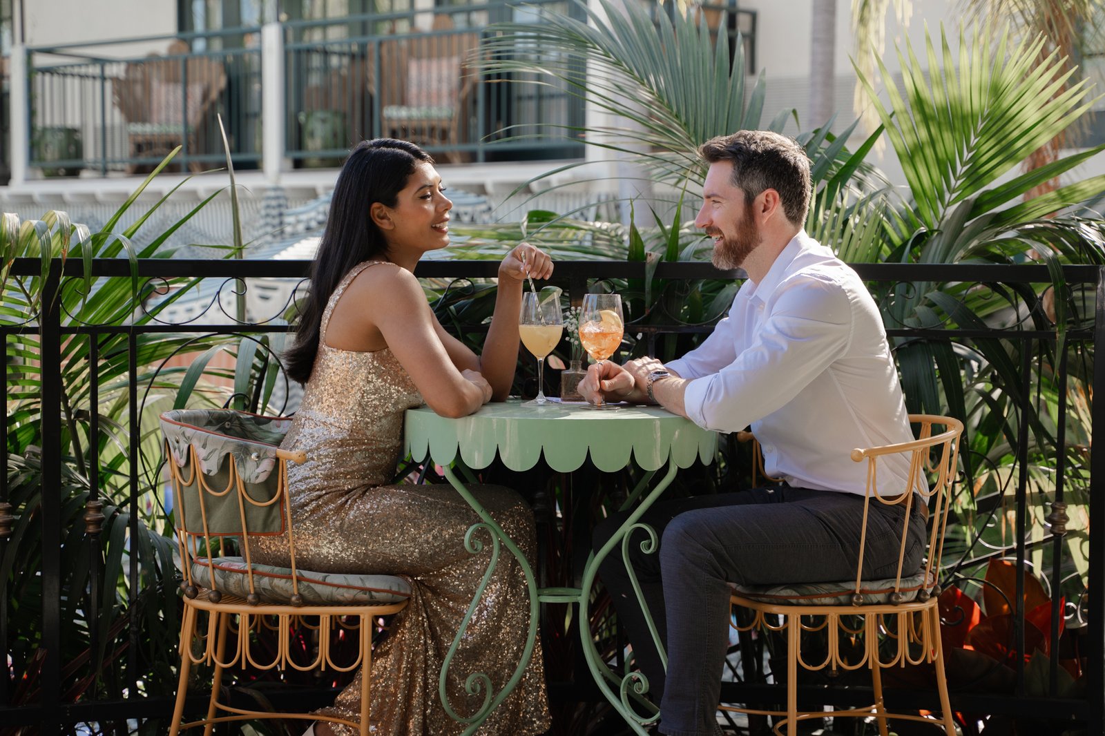 After the proposal, we moved into a small couple session that felt straight out of Old Hollywood. Caro in her golden, glittering dress, Kirk completely lost in the moment. The two of them glowing against the vintage charm of Hotel Lafayette.